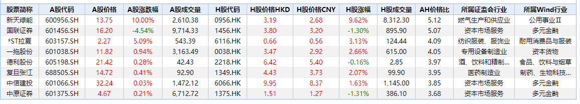 个股方面,新田绿能、国联证券、*ST拉夏、一拖股份、德利股份、复旦张江、中信建投和中原证券等个股位列溢价榜首,投资者可关注相关个股估值回归机会。