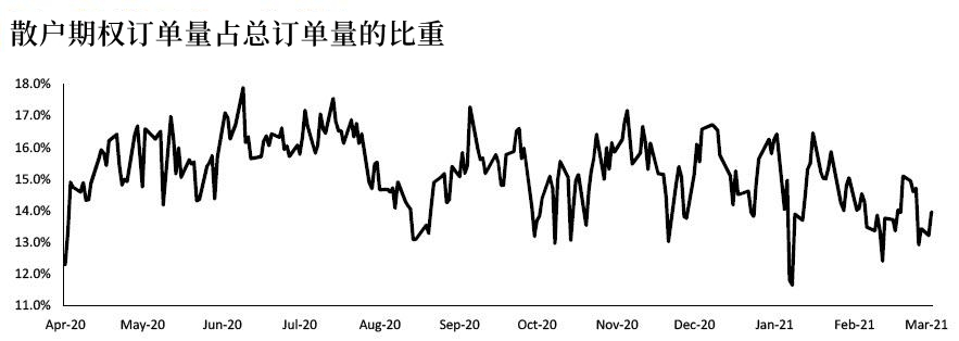 3. 散户市场对期权交易的偏好在上周出现反弹。