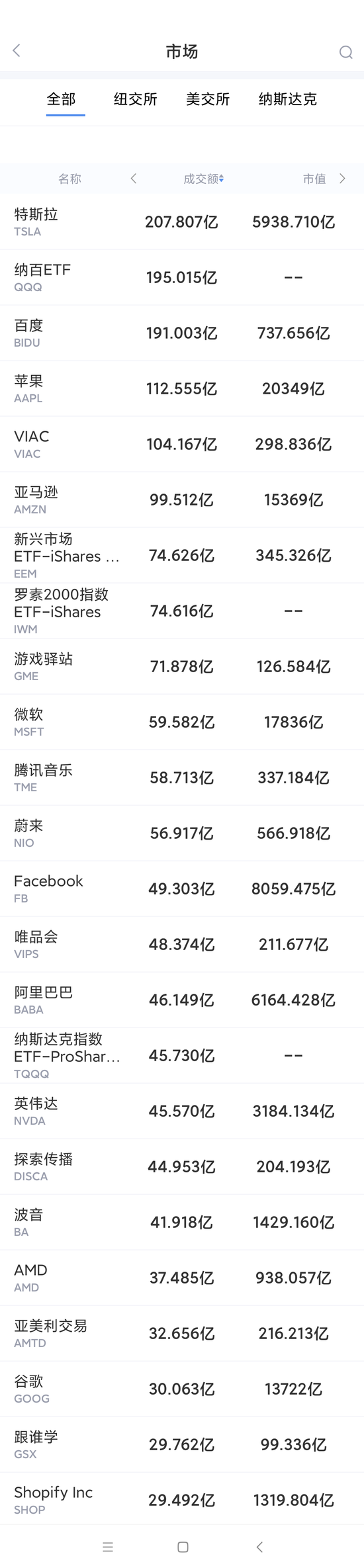 以下为美股当日交易最活跃的20只股票(按成交额):(截图来自新浪财经APP 行情-美股-市场板块 左滑更多数据)下载新浪财经APP