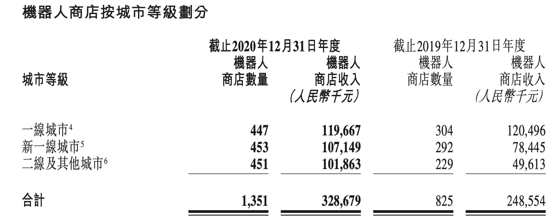 不过,泡泡玛特在一线城市的机器人商店数量新增近五成同时,在这些城市的机器人商店总体收入却未增反降,相关收入由2019年的1.2亿元下降至2020年的1.19亿元。