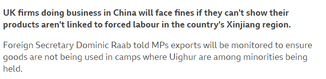 可是,随着美国的施压,越来越多的西方国家也在盘算着效仿美国对新疆棉花进行封杀。比如英国政府今年1月就表示如果英国品牌使用来自新疆地区通过所谓的“强制劳动”采摘的棉花,就会遭到处罚。