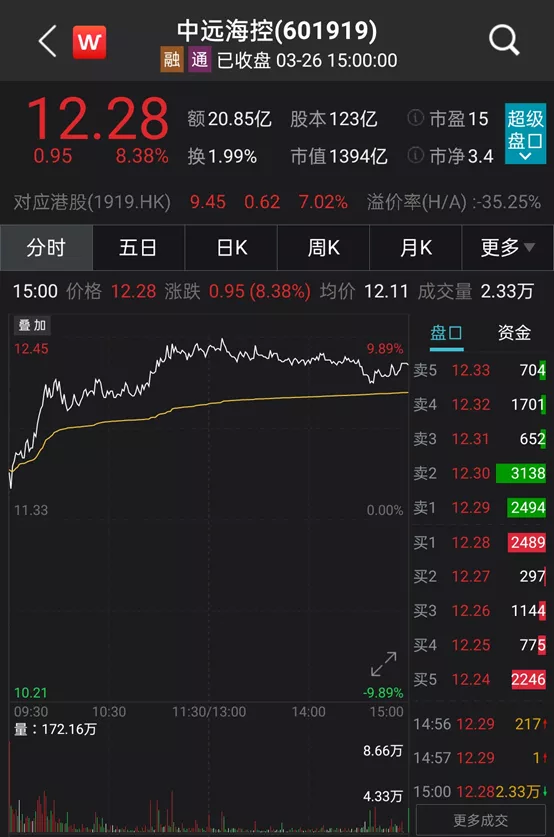 周五,海运股集体反弹。A股中远海控(601919.SH)涨超8%,宁波海运(600798.SH)、中谷物流(603565.SH)、海峡股份(002320.SZ)和招商轮船(601872.SH)跟涨;港股中远海控(01919)涨超7%。