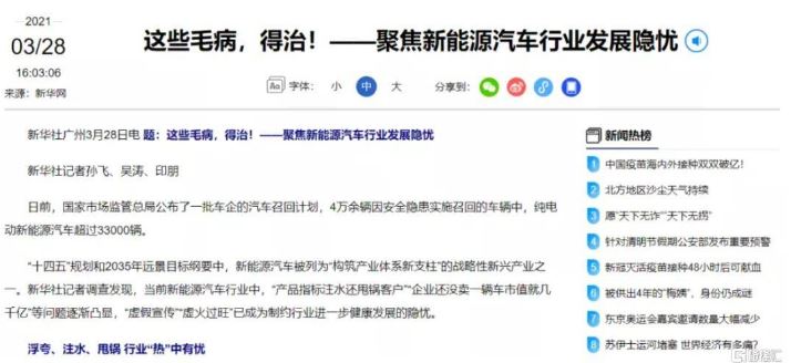 新华社:当前新能源汽车行业存“虚假宣传”,“虚火过旺”隐忧