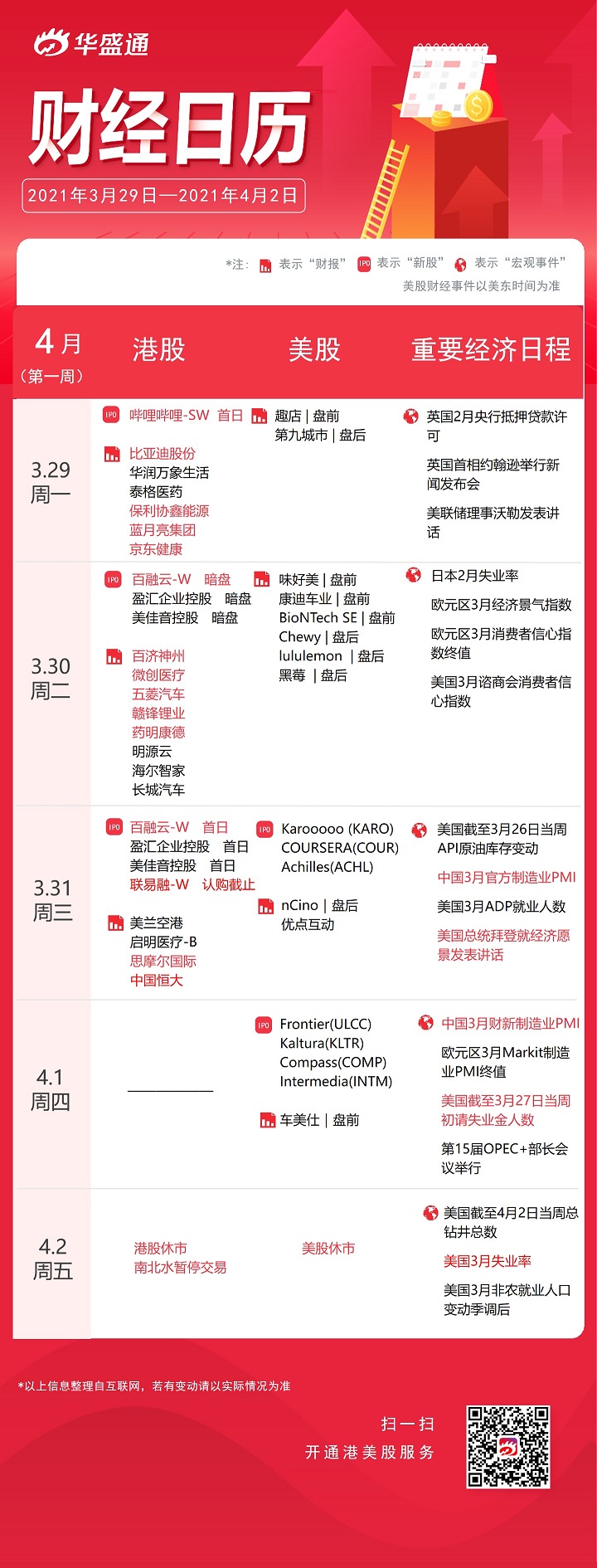 以上即为本周港美股及宏观资讯一览,祝新的一周投资顺利~