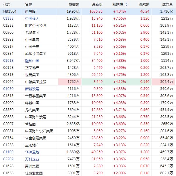 华盛资讯3月29日消息,内房股盘中走高。截止发稿,中国恒大大涨超7%,龙湖集团大涨6%,融创中国涨4%。
