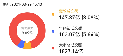 其中,窝轮总成交147.87亿港元,牛熊证总成交103.07亿港元。