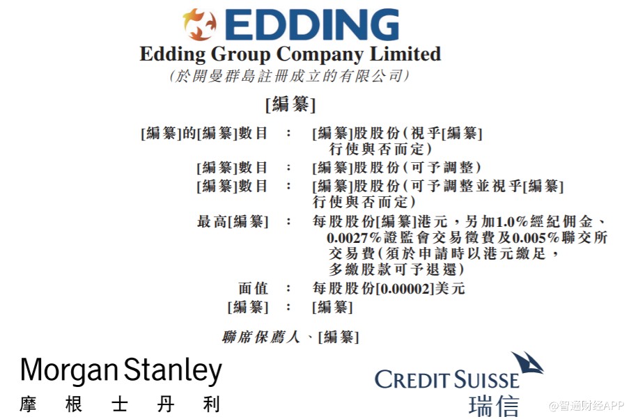 3月29日,亿腾医药(Edding Group Company Limited)向港交所主板递交上市申请,摩根士丹利及瑞信为联席保荐人。值得注意的是,亿腾医药曾于去年9月底向港交所主板递交过上市申请。