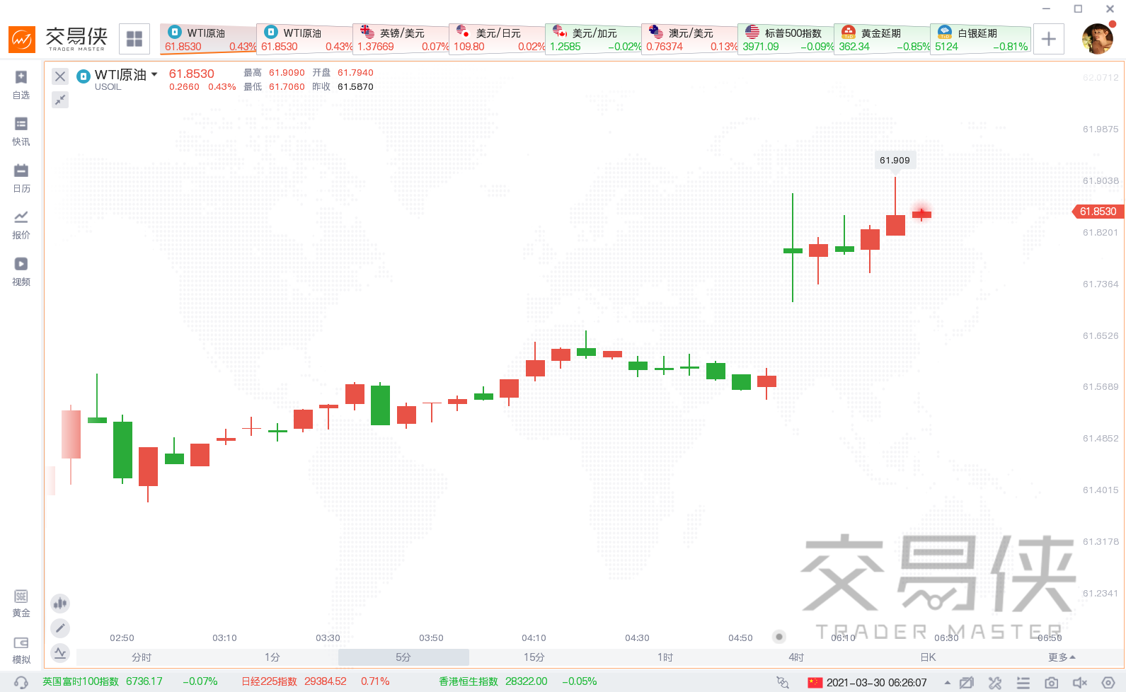 上述消息刺激WTI原油期货开盘上涨0.3%。