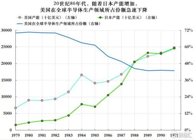 在20世纪80年代,随着日本产能增加,美国在全球半导体生产领域所占份额急速下降。
