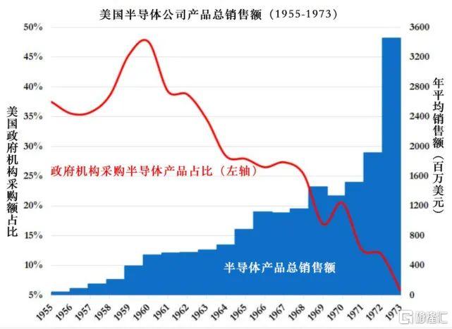 由于半导体的商业应用日趋繁荣,再加上缺乏真正的国际竞争,20世纪70年代是美国半导体公司崛起的黄金时代,尽管政府采购和指导变得越来越不重要。
