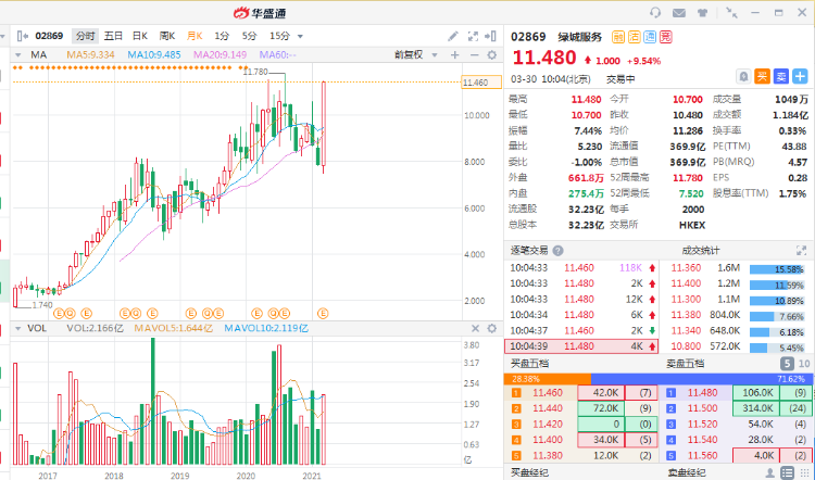 3月29日消息,绿城服务连续三日暴涨,今日涨幅扩大至9%,三日涨40%。公司2020年实现营业收入破百亿,同比增长17.7%,归母净利润7.1亿元,同比增长48.8%。
