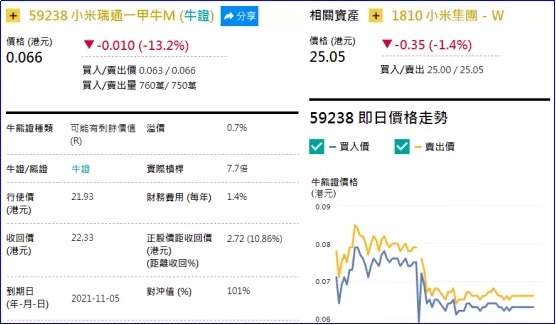 2、看错方向:小米瑞通一甲牛(59238.HK),周一收跌13.16%。