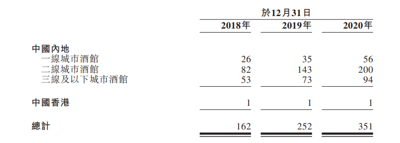 根据弗若斯特沙利文,截至2020年底,海伦司国际控股有限公司旗下的Helens酒馆门店总数达到351家,年复合增长率达47.3%,在中国酒馆行业中连续三年保持规模最大的市场领导地位。在去年疫情环境下,其新开店数仍超过100家,门店覆盖中国近80个城市,在中国一线、二线及三线及以下城市的Helens 酒馆数量分别为56家,200家及94家,分别占2020年内酒馆总数量的16.0%、57.0% 、26.8%。