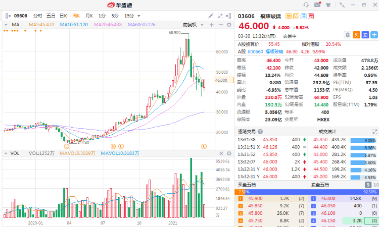 福耀玻璃午后走高,涨幅扩大至9.52%,报价45.6港元,A股福耀玻璃涨停。公司昨日公布2020年年报,净利润同比下降10.2%,但毛利率有所提升,董事会拟10派7.5元派发股息。
