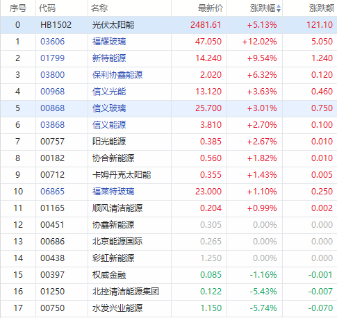 华盛资讯3月30日消息,光伏板块又见回升态势,盘中涨幅扩大逾5%。福耀玻璃大涨逾12%,新特能源涨超9%,保利协鑫能源涨超6%,信义光能、信义玻璃涨超3%。