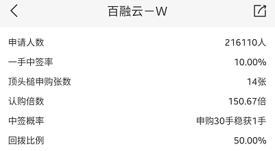 总认购人数216110人,132354人只认购1手(一手党),中签率10%,申请30手稳获1手。