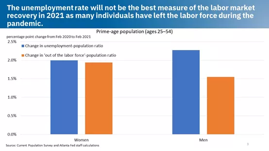亚特兰大联储主席波斯蒂克(Raphael Bostic)在上周的一场演讲中,解释了充分就业与最大就业之间的区别:简单来说,充分就业是指足够低的失业率,而最大就业是离开劳动力市场的人重新回到劳动力市场。