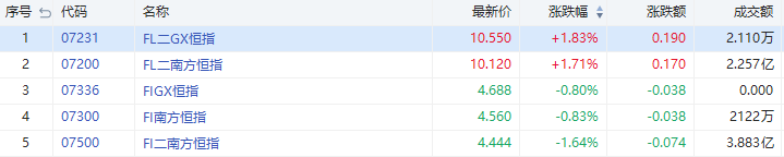 看多恒指的ETF走强,GX两倍看多恒指(07231.HK)涨1.83%,成交额2.11万港元 看空恒相关ETF走弱,其中南方两倍看空恒指(07500.HK)跌1.64%,成交额3.88亿港元。