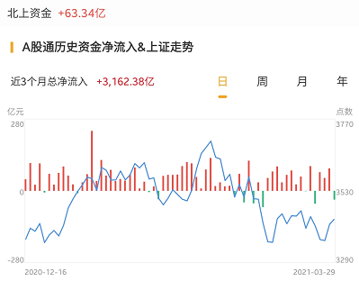 北上资金今日净流入63.34亿元,周一净流出超34亿元。