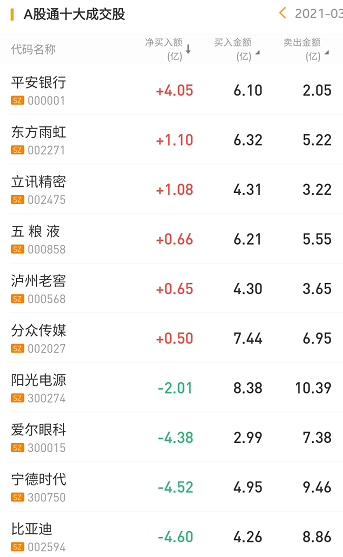 北上资金今日净买入平安银行4.05亿元,为今日买入之最。此外,北上资金今日净买入东方雨虹1.1亿元。