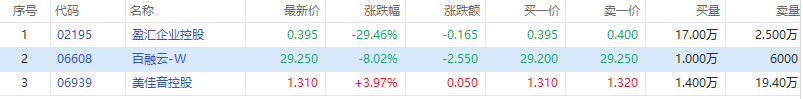 美佳音控股(06939.HK)盘中拉升收涨3.94%,一手盈利100港元;盈汇企业控股(02195.HK)收跌29.46%,一手亏损825港元。这三只新股将于明日正式上市。