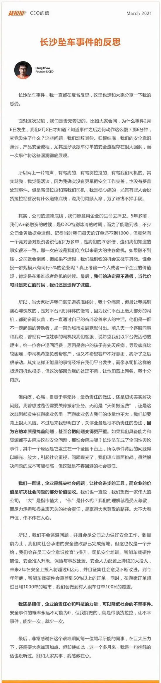 货拉拉CEO发了内部反思信,不得不说,这个时机掌握的恰到好处,在舆论热潮散去的时点反思,大家更理性一些,也更能接受其反思。而且,用内部信的方式,曲线与外部沟通,既避免了直接对话的冲突,又将该传递的信息传递出去。