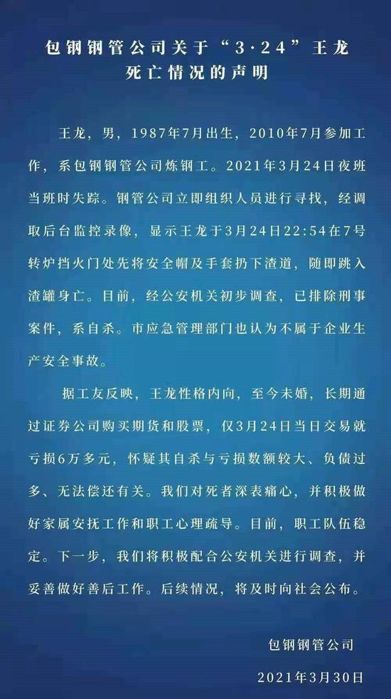让我有些愤怒的,是包钢钢管公司的回应,其一名员工跳入渣罐自杀,其惨烈程度可想而知。但是,我们却等到了这样一个回应: