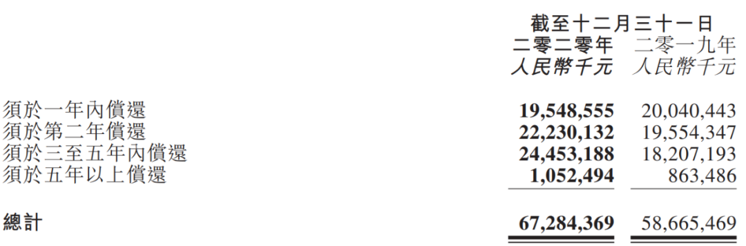 再就是融资成本上,正荣地产2020年增加约4.3%,主要是2020年有息负债规模增加。截至2020年末,其借款总额为672.84亿元同比2019年增加了14.69%。其中2-5年内偿还的贷款有明显增加,同比增长了23.63%