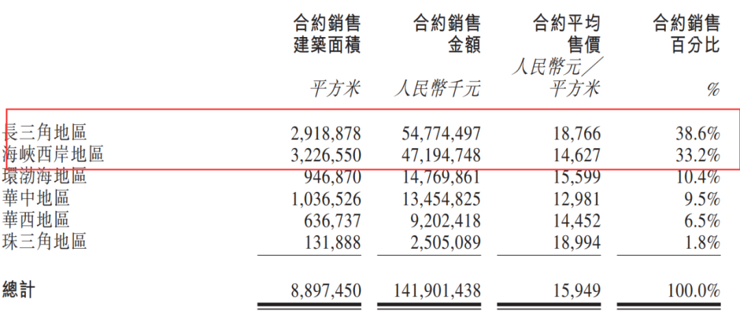 新增土地储备中,分别有43%及31%位于长三角及海西区域,其余则分散于中西部区域、珠三角区域以及环渤海区域;