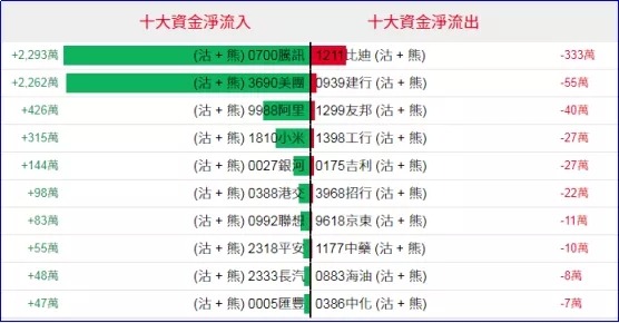 淡仓(认沽证及熊证)方面,周二腾讯、美团相关淡仓分别约2293万、2262万港元资金净流入部署,阿里、小米相关淡仓也有部分资金净买入造空;比迪、建行、友邦等相关淡仓则见少量资金净流出。
