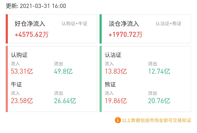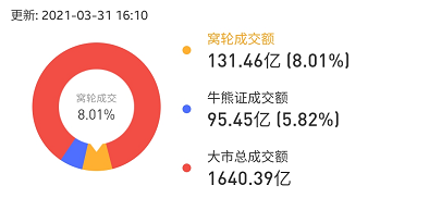 其中,窝轮总成交131.46亿港元,牛熊证总成交95.45亿港元。