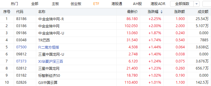 港股市场涨幅前十ETF