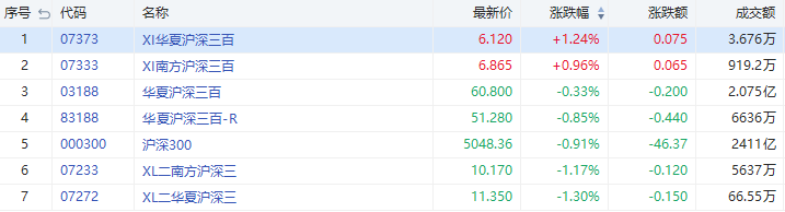 今日沪深300指数收跌0.91%。其中华夏沪深三百收跌0.33%,成交2.075亿港元;华夏做空沪深三百上涨1.24%,成交3.676万港元。