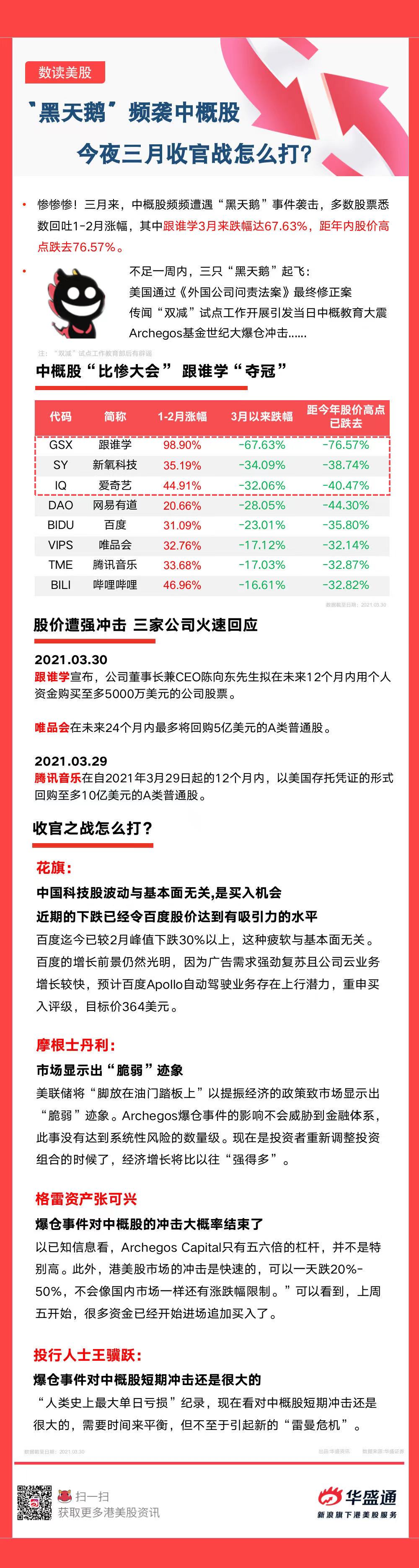 华盛资讯3月31日消息,今年3月以来中概股频频遭遇“黑天鹅”事件袭击,多只热股股价连连下挫,悉数回吐1-2月涨幅,到底能有多惨?