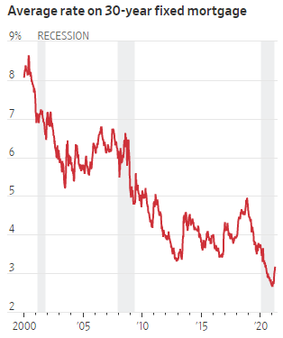 而《华尔街曰报》引用房地美的30年期固息抵押贷款利率均值似乎也证明了这一点,因为自从今年初以来,利率稳步上升,现在已经突破了3%的整数位。