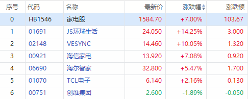 华盛资讯4月1日消息,家电板块近期加速回升,个股皆大幅上涨。截至发稿,JS环球生活涨超14%,VESYNC涨超10%,海信家电涨超7%,海尔智家涨超5%。