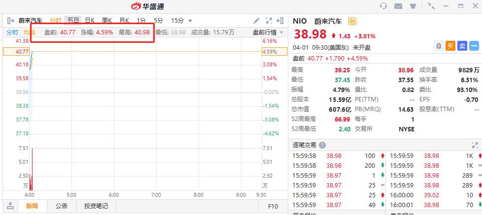 华盛资讯4月1日讯,今日美股盘前,美股新能源汽车板块拉升,蔚来汽车(NIO.N)、小鹏汽车(XPEV.N)涨超4%,百度(BIDU.O)涨3%,理想汽车(LI.O)涨2.8%。