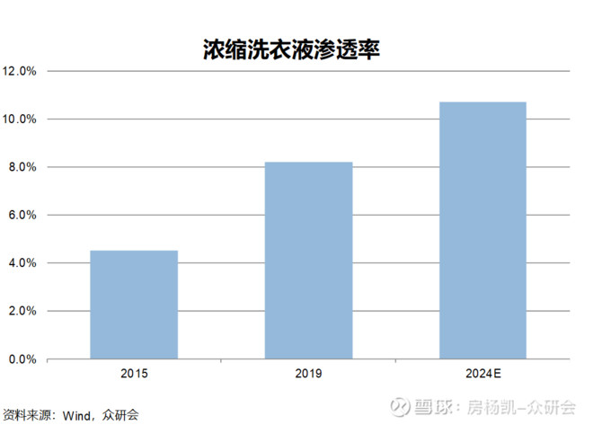 一二线城市产品升级,下沉市场极具潜力。弗若斯特沙利文数据显示,目前我国整体市场浓缩洗衣液的渗透率仅为8.2%,预计2024年将能够达到55%左右,而世界主要经济体的渗透率却已经达到了100%。同时参考一二线城市及其他城市近几年的洗手液和洗衣液的增长情况,我们可以观测到的是,三线及以下城市的增长速度较快,且受益于消费升级,下沉市场的增长具备较大潜力。一二线城市由于市场及消费者培育较早,未来更多的可能则是在于浓缩洗衣液的产品升级。基于此,蓝月亮将70%的分销商布局于下沉市场并且重点推广浓缩洗衣液的策略无疑是十分有前瞻性的。