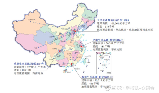 生产方面,蓝月亮则在广州、天津、昆山、重庆建立了四大生产基地,完成了能够辐射全国的产能布局。