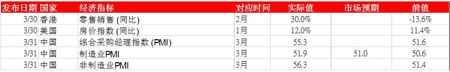 美国服务业PMI (3月),中国财新服务业PMI (3月),中国综合采购经理指数 (PMI) (3月),香港 制造业PMI (3月),中国居民消费价格指数(CPI) (同比) (3月),中国生产者物价指数(PPI) (同比) (3月),美国核心PPI (月环比) (3月)。