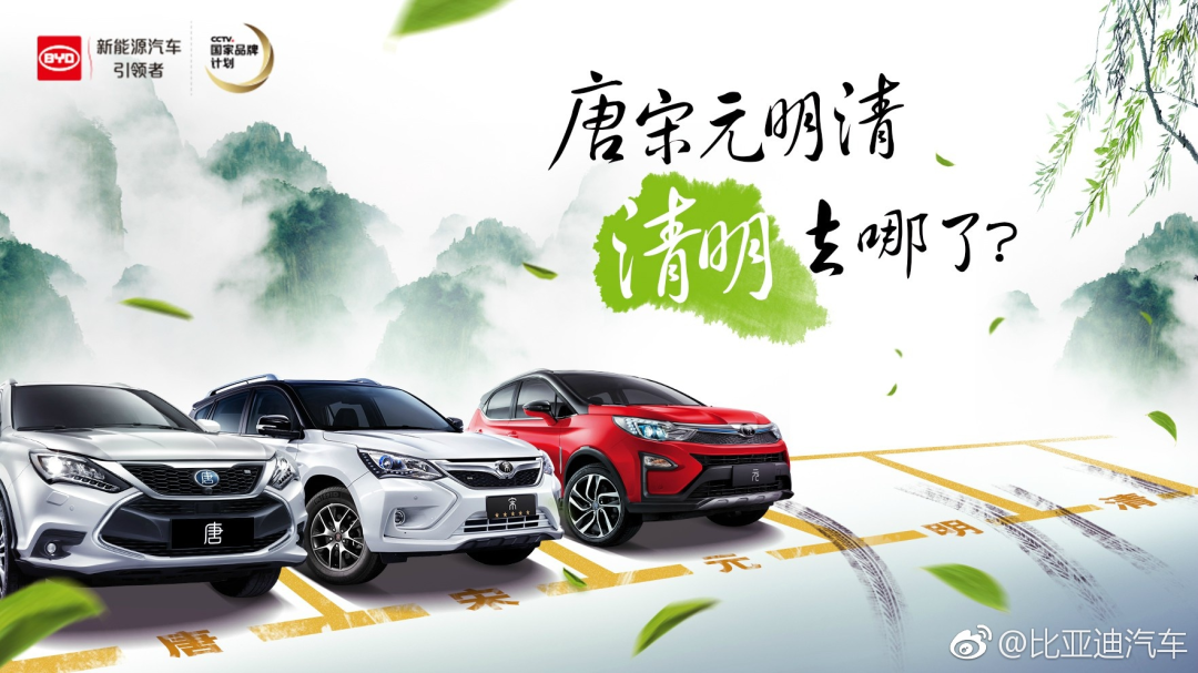 比亚迪的创意非常巧妙。“唐宋元明清,清明去哪了?”将首句中的明清倒过来,就变成了清明,询问大家清明去哪了,也很符合清明节踏青出游的习俗。