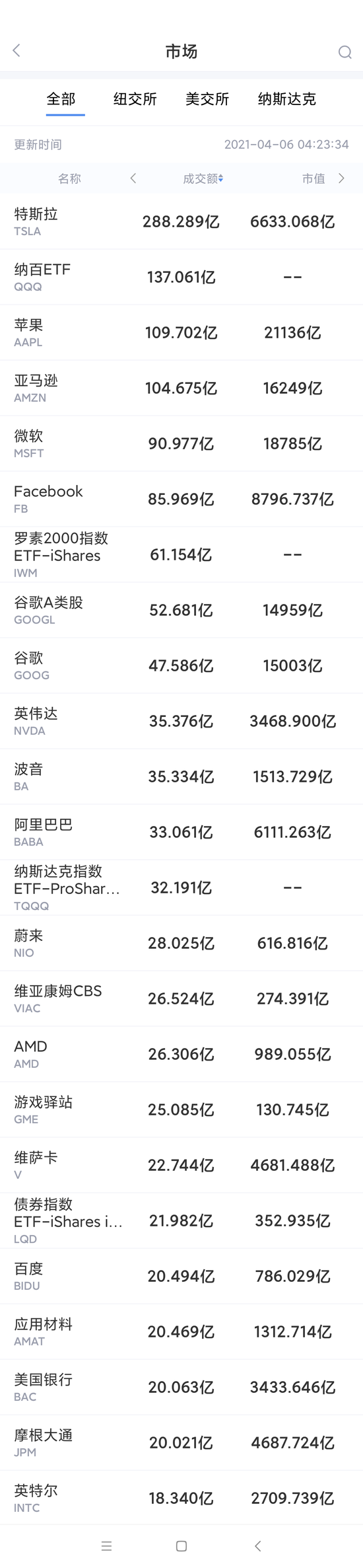 以下为美股当日交易最活跃的20只股票(按成交额):(截图来自新浪财经APP 行情-美股-市场板块 左滑更多数据)下载新浪财经APP