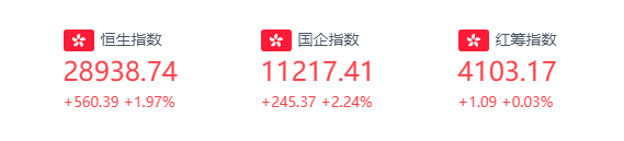 恒生指数上周涨2.13%,报28938;恒生科技指数上周涨5.41%,报8569;国企指数上周涨2.29%,报11217。