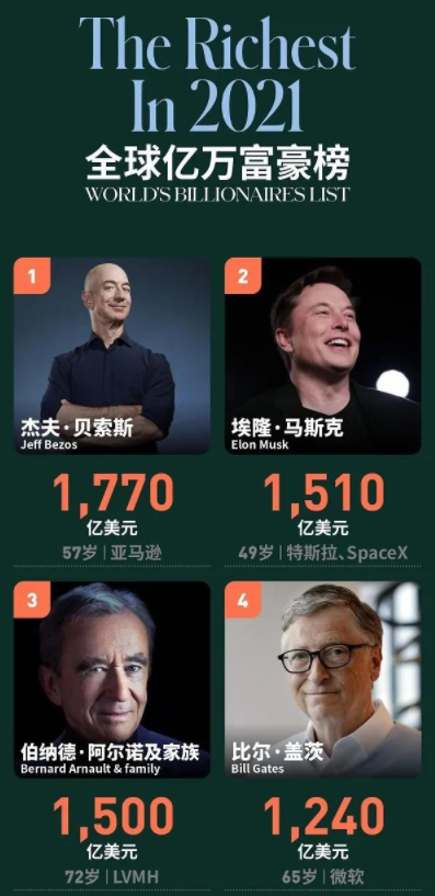 福布斯2021年富豪榜:巴菲特20多年来首次未进前五