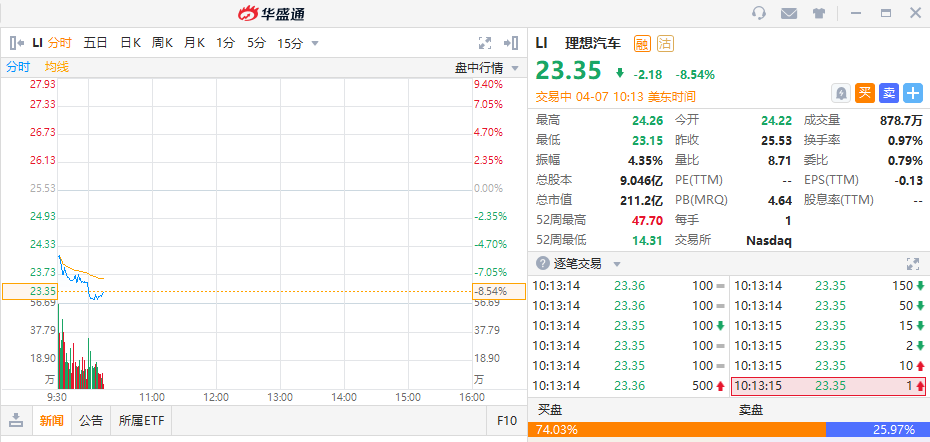 华盛资讯4月7日消息,热门中概股走低,截至发稿,理想汽车跌超8%,逸仙电商跌超7%,小鹏汽车跌超4%,哔哩哔哩跌超4%。