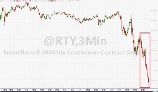 小盘股跌幅更大,小盘股指罗素2000低开低走,午盘跌幅扩大到1%以上。