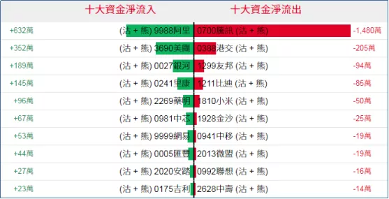 淡仓(认沽证及熊证)方面,周三腾讯相关淡仓录得约1480万港元资金净流出套现,其他资金流入流出规模较小。