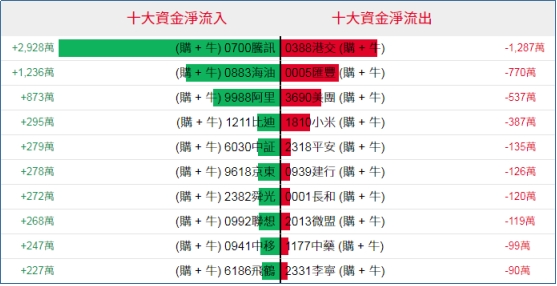 好仓(认购证及牛证)方面,周四腾讯、中海油相关好仓单日录得约2928万、1236万港元资金净流入部署,港交所单日录得约1287万港元资金净流出套现。