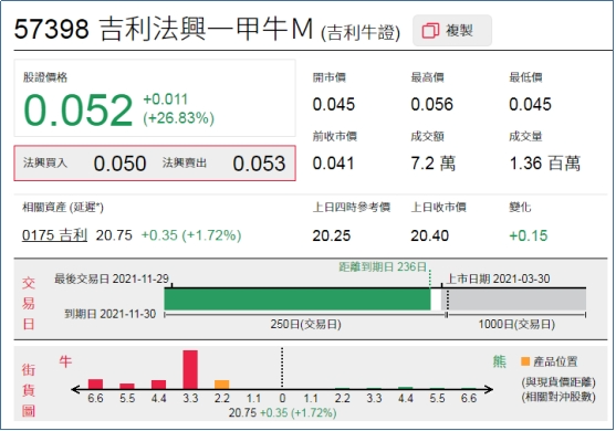 1、强势轮证:吉利法兴一甲牛(57398.HK),周四上涨26.83%;