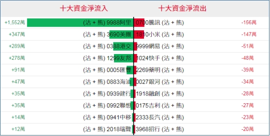 淡仓(认沽证及熊证)方面,周四阿里相关淡仓录得约1552万港元资金净流出套现,其他资金流入流出规模较小。
